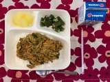 本日の献立は、・えびのチリソース ・中華スープ ・ヨーグルト ・パン ・牛乳です...