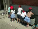 強い日差しの中、子ども達は元気いっぱいで遊んでいます。 (写真1)違う学年...