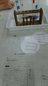 6年生の理科、酸性・アルカリ性を調べる実験です。丁寧に器具を使って実験していま...