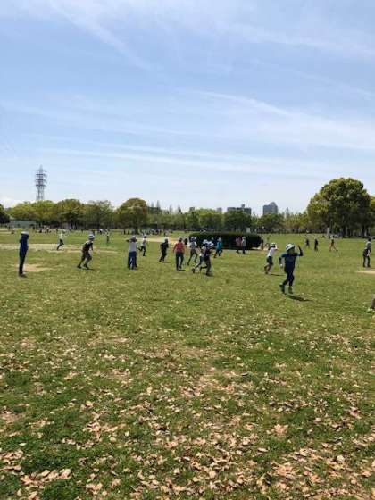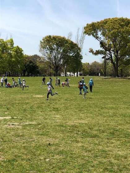 昼食の後、芝生広場で思いっきり走りまわって遊びました。子どもたちの歓声が響きわたっていました。