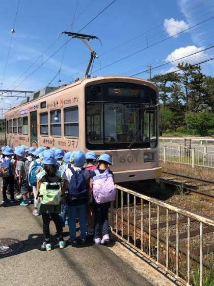 松虫駅から貸切の電車に乗って、浜寺公園に着きました。