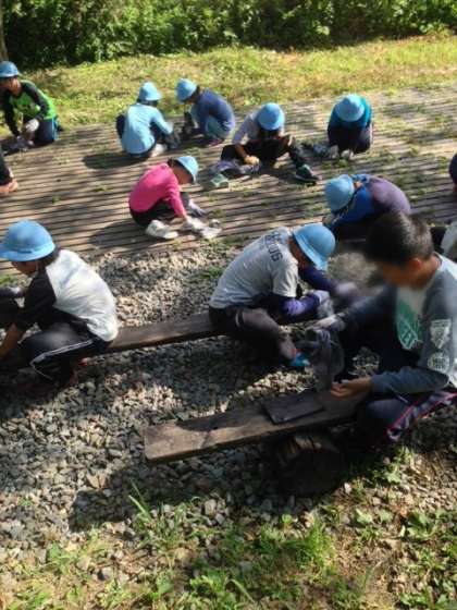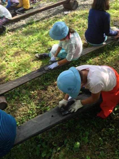 すすを落として、つやのある木目になるまでごしごし磨きます。