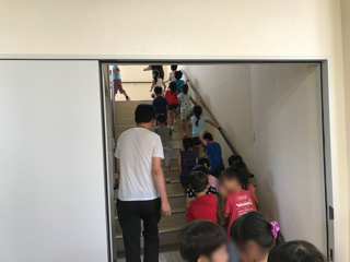また、大津波にそなえて3階よりも高い場所へ避難する訓練も行いました。