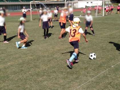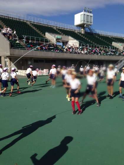 午前中は、阿倍野区の他の学校とともに、サッカーやドッジボール、大なわをしました。