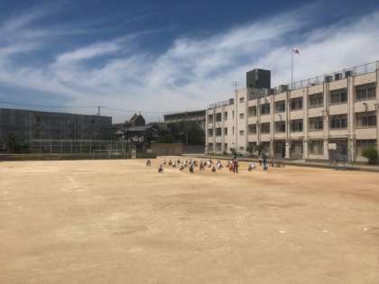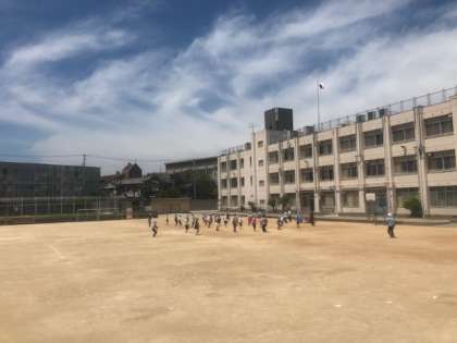 今日はとてもいいお天気でした。課題配布などが終わった後、運動場に出てラジオ体操などの軽い運動をする学年もありました。