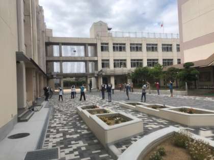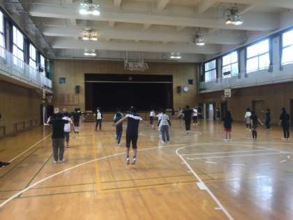 ストレッチ体操や縄跳びを使った跳躍運動など、それぞれの学年の体力に合わせて、軽い運動をしました。