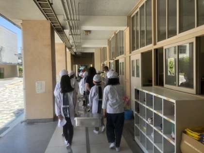 昨日から6年生の子どもたちが、1年生の給食のおかずや食器などを運ぶお手伝いをしています。