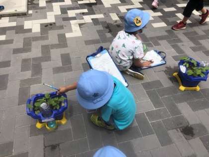 各学年とも、クラス全員がそろったということもあって、学習園に行って植物の世話をしたり、観察をしたりしていました。