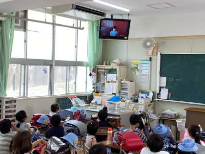 今日の5時間目に1学期の終業式をテレビ放送で行いました。