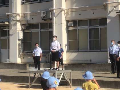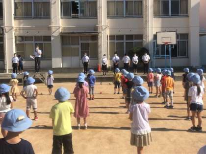 朝会で一人ひとり自己紹介すると、子どもたちは元気に「よろしくお願いします!」とあいさつしました。朝会の後、実習生はそれぞれ実習クラスに入り、子どもたちからいろいろな質問を受けていました。