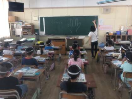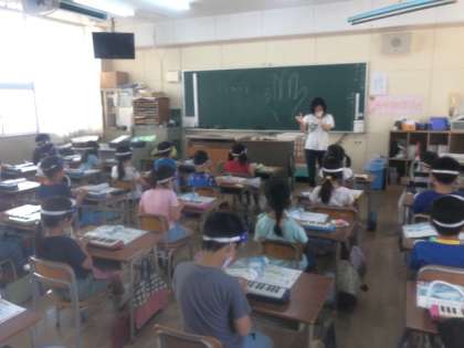 2年生がフェイスシールドをつけて鍵盤ハーモニカの練習をしました。