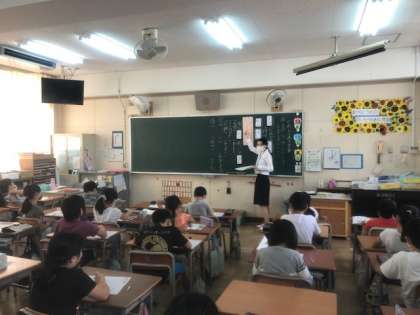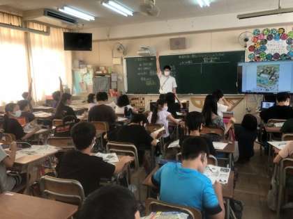 実習で学んだ全てをこの1時間に注ぎ込み、緊張しながらもしっかりと授業を行っていました。子どもたちもその熱意に応えるように、真剣に授業に臨んでいました。