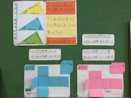 これらの掲示物が子どもたちの算数に対する関心を高め、学びたいという意欲につながり、さらに理解を深めることに役立っていることと思います。