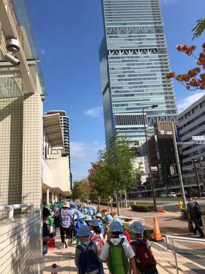 帰りは少し汗ばむ陽気となりましたが、子どもたちは最後まで元気に歩いて帰校しました。