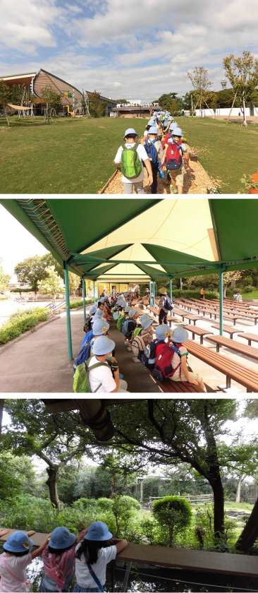 子どもたちはいろいろな種類の動物に興味を示しながら、指をさしたり互いに話しをしたりしながら楽しそうに園内を歩きました。