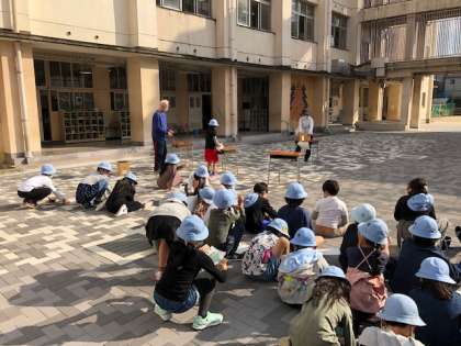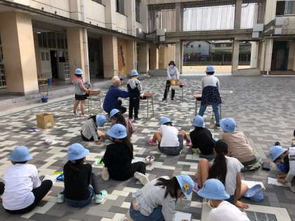 はね返した日光を重ねたときの明るさや温度について調べる実験をしました。