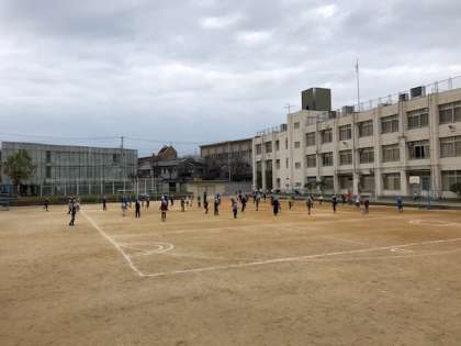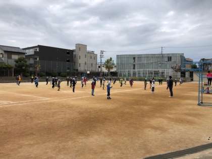 15分休みになると運動場に出てきて、音楽に合わせてなわとびを始めます。