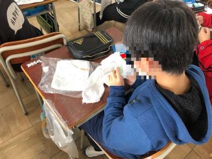 チャコペンでデザインを描き、一針一針ていねいに縫い付けています。