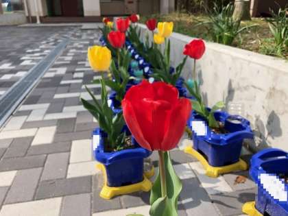 この花々をいちばん見てほしい子どもたちが春休みで学校にいないことが残念です。