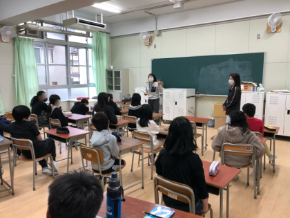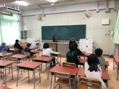 5・6年生が各教室に分かれて、初めての委員会を行いました。