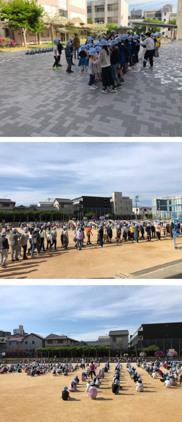 6年生が心をこめて作ったメダルを首にかけてもらった1年生は、6年生に伴われて運動場に入場しました。