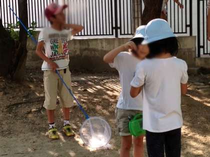 子どもの姿が少なくなった学校では、セミの声の大合唱です。