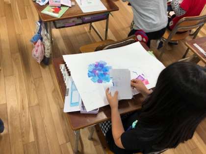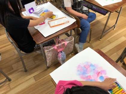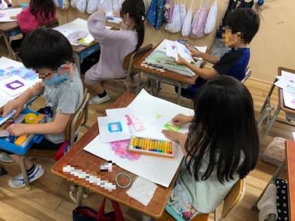 子どもたちは色を変えたり濃さを変えたりしながら、夢中になって描いていました。