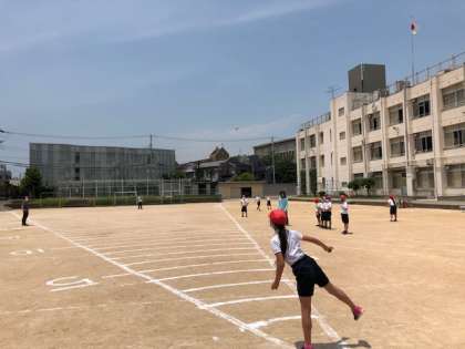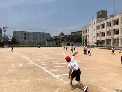 3年生の体育は、スポーツテスト(ソフトボール投げ)でした。