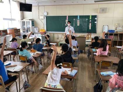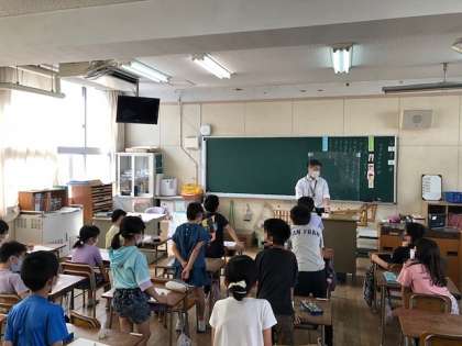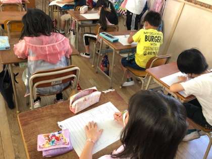 最後に自分のプリントに書いたカタカナの品物や動物の名前を使って作文し、みんなに発表しました。
