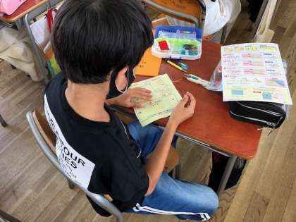 刺繍(ししゅう)のように複雑なものではないものの、子どもたちにとっては初めての縫い取りなので、一針一針ていねいに縫っていました。