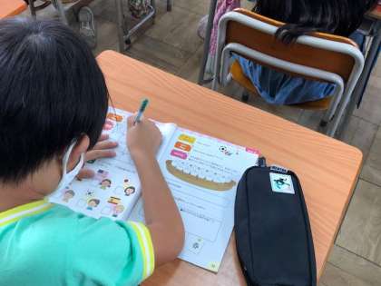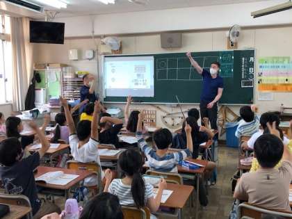 また、英語でじゃんけんをして勝ち負けをテキストに記録するなどしていました。