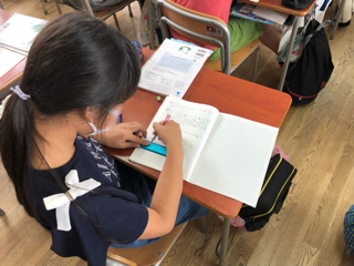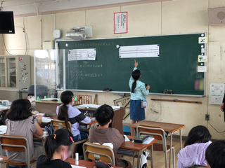 各自ノートに数直線を書いて考え、その考えを前に出て発表していきました。