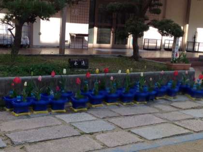 1年生が球根を植えて、世話をしてきたチューリップも色とりどりの