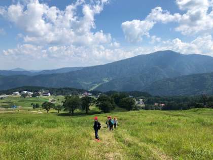 オリエンテーリングのI地点まで、みんな一生懸命登っています。子どもたちの笑顔が、まぶしいです。