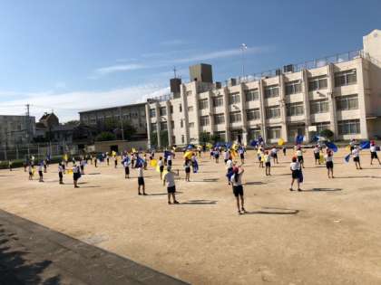 6年生は3クラス合同で“フラッグ”の練習を始めました。