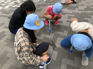 “水”のそれぞれの体積がどのように変わるかを観察していました。
