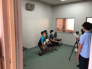 テレビの画面に3人の児童が映し出されると、「だれが空気椅子に座っているでしょ