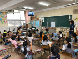 う」という問題が出されました。各教室では子どもたちが指で答えを示し、正解を当