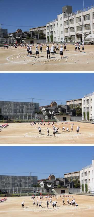 “チェッチェッコリ〜♪……”という音楽に合わせて子どもたちはとてもかわいらしく踊ったあと、笛の合図で一斉に玉をかごに投げ入れていました。