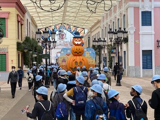 集合写真を撮った後、子どもたちは、グループに分かれて喜んでアトラクションに乗りにいきました。