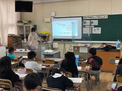 “ほねをじょうぶにしよう”というテーマの栄養教育がありました。