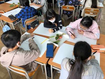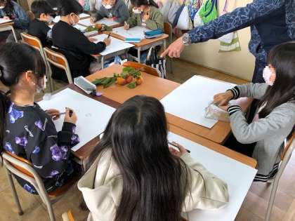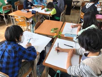 子どもたちは見た目だけではなく、触り心地や重量感などにも気づきながら絵を描くことができました。