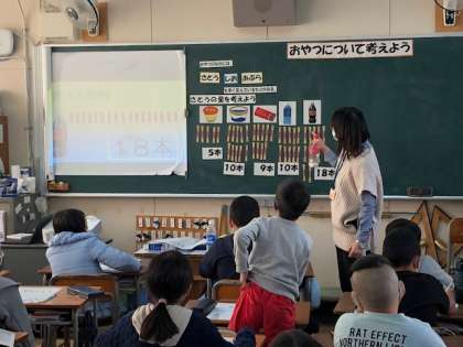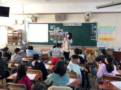 栄養教育で「おやつを考えよう」の授業をしていただきました。