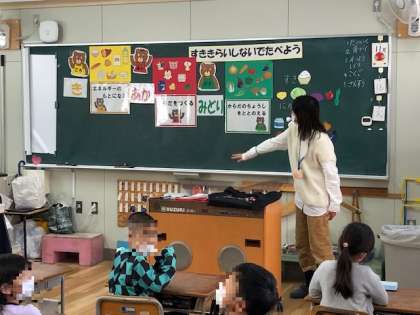 食べ物が3つのグループに分かれていることや、好き嫌いなく食事をとることによって、じょうぶで健康な体になることを教えてもらいました。