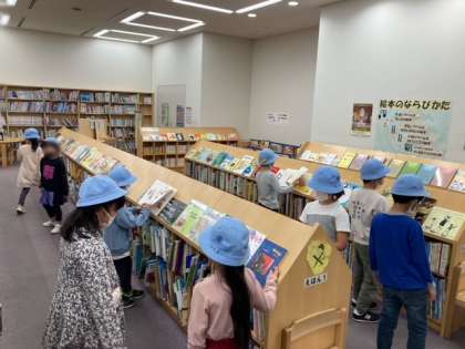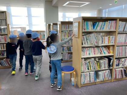 閲覧スペースでは、自分の読みたい本を案内板を使って探したり、小声で話したり図書館での過ごし方を意識している様子が見られました。
