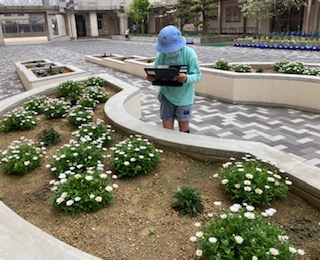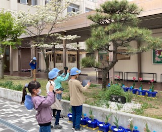 3年生が、春を探しに校内を散策しました。草花や昆虫などを見つけて、タブレット端末で写真を撮りました。どんな春を見つけることができたのでしょうか。