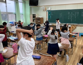 金曜日の朝の時間は、姿勢体操をしています。保健委員会の児童が姿勢体操を教え、その後健康調べをしています。姿勢が悪いと身体の一部に負荷がかかり、身体のトラブルを引き起こします。また、疲れが取りにくく、集中力が続かなくなります。これからも姿勢体操を続けていきます。