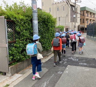 緊急時の集団下校を考え、16地区にわかれて地区別集会をしました。自己紹介をして、地区長を決め、通学路を確認しました。ペア学年で並び下校しました。