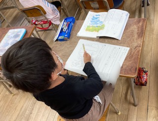 2年生が国語「風のゆうびんやさん」の第一場面を学習しました。ワークシートの吹き出しに自分の考えを書き入れました。