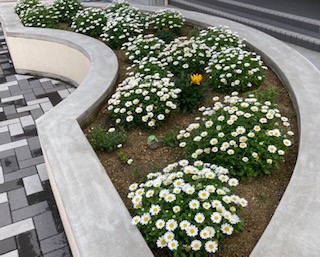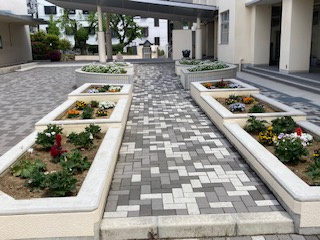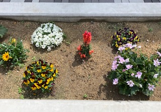 花の広場には、春の花が咲き穏やかな気候とともに、子どもたちの心をいやしてくています。観察やスケッチなど学習の教材としても活用しています。